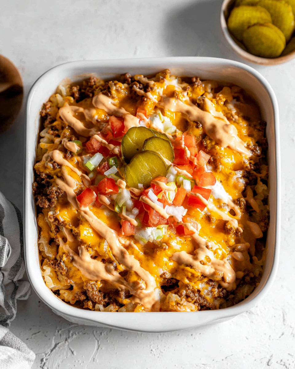 There are many reasons to give the Big Mac Casserole a try. First, it’s a crowd-pleaser! Whether you’re cooking for kids or adults, everyone loves the familiar flavors of a Big Mac. Second, it’s versatile. You can easily customize it to fit your dietary needs. Want a lighter version? Swap ground beef for turkey and use whole wheat pasta. Craving something spicy? Toss in some jalapeños! Lastly, this casserole is a time-saver. It’s a one-dish meal that requires minimal cleanup, making it perfect for busy weeknights. So, gather your ingredients and get ready to enjoy a delicious meal that brings the taste of a Big Mac right to your table!
